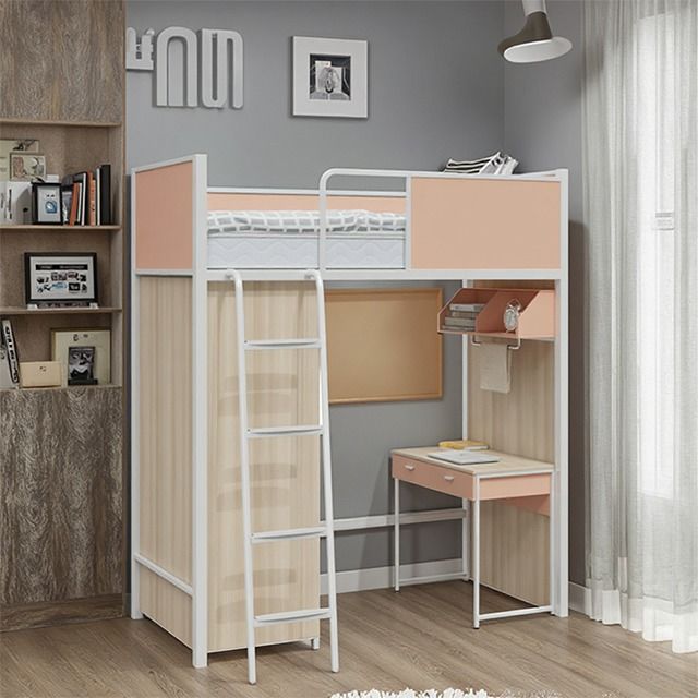 سرير بطابقين من الصلب، طاولة، سرير عنبر جامعي، سرير مدمج، سرير بطابقين مدمج من الصلب والخشب، سرير مرتفع ومنخفض