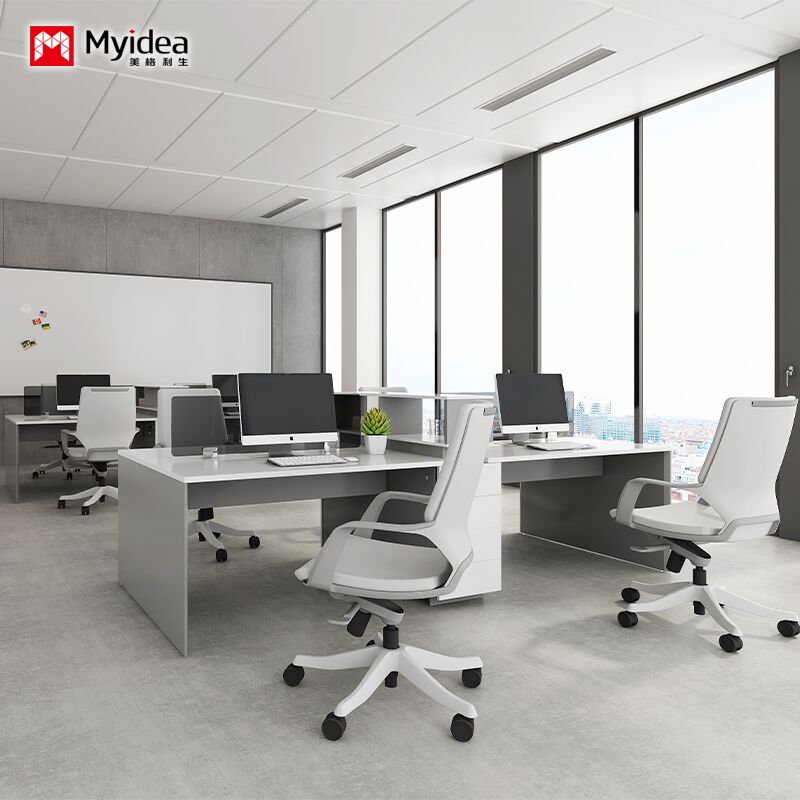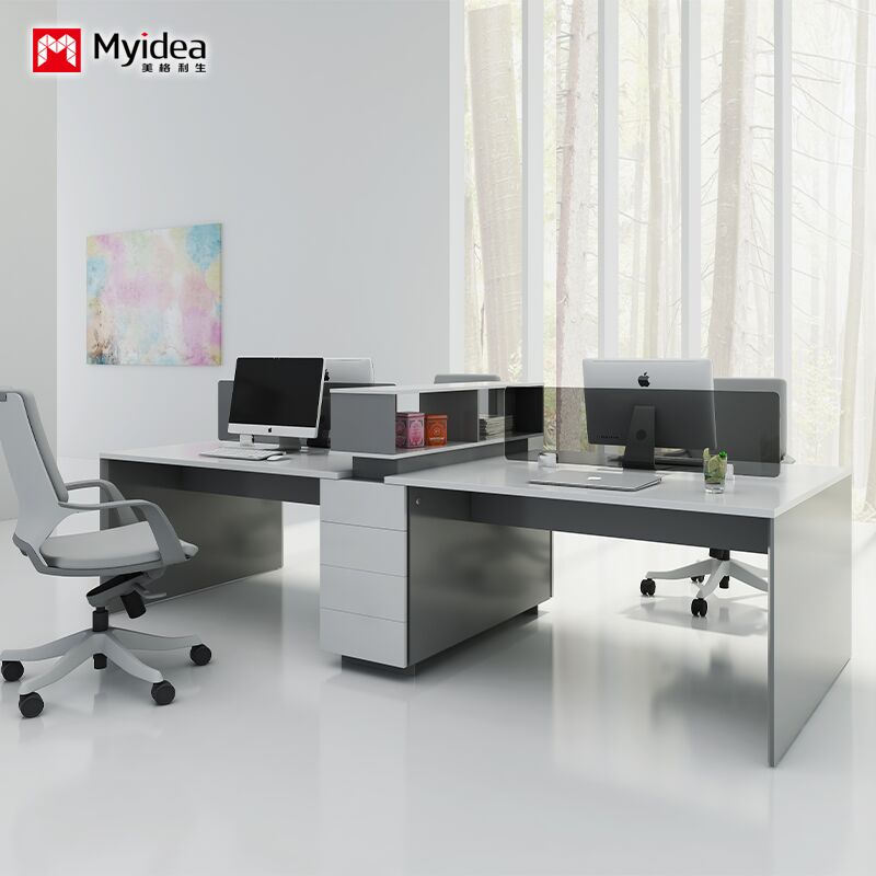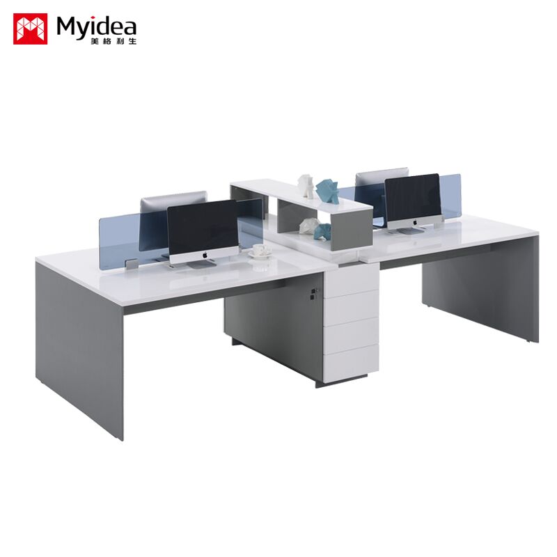 مكتب موظفين لأربعة أشخاص مع أدراج التخزين، مكتب مكتبية ملونة بيضاء لامعة