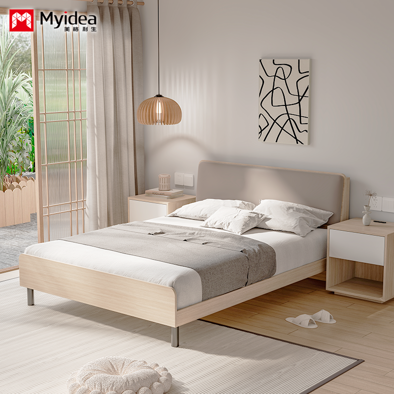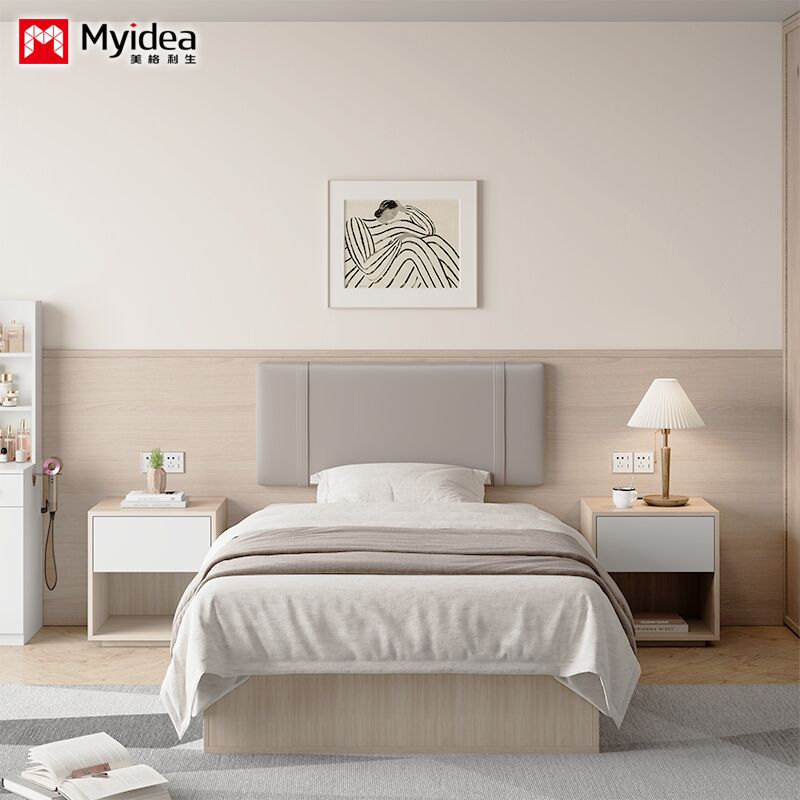 تخصيص سرير لشقة واحدة، منزل للإقامة، سرير لوح مستقر بتصميم منفذ شحن، حزمة ناعمة لرأس السرير، سرير حديث