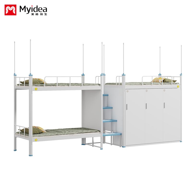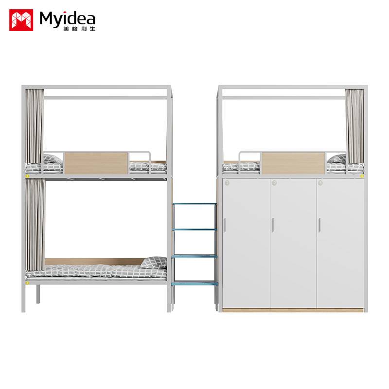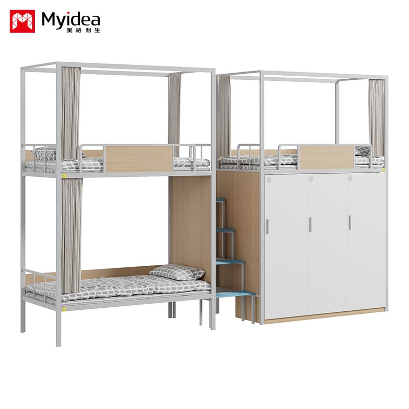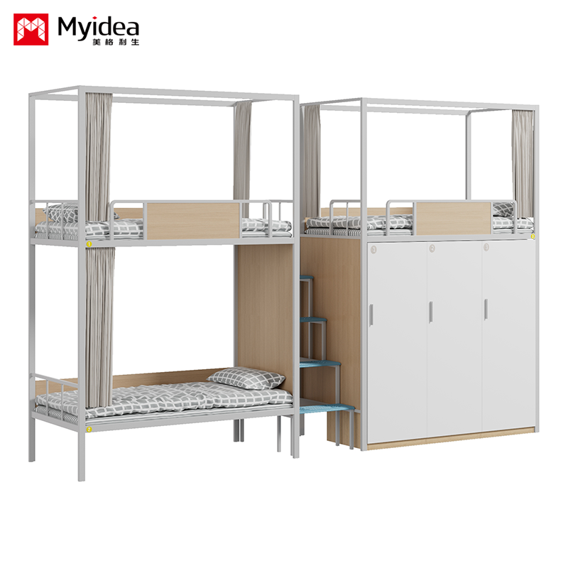 غرفة نوم سرير لثلاثة أشخاص مع خزانة ملابس، مصباح ليلي آمن سلم خطوة، حواجز عالية، ستارة السرير، سرير غرفة نوم المدرسة