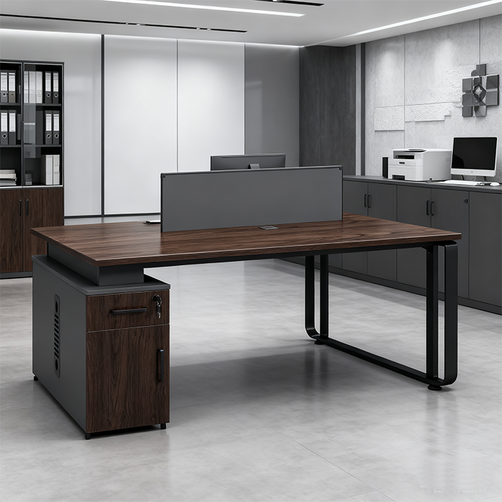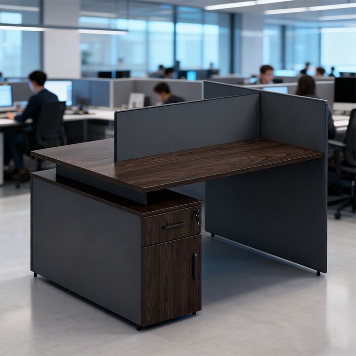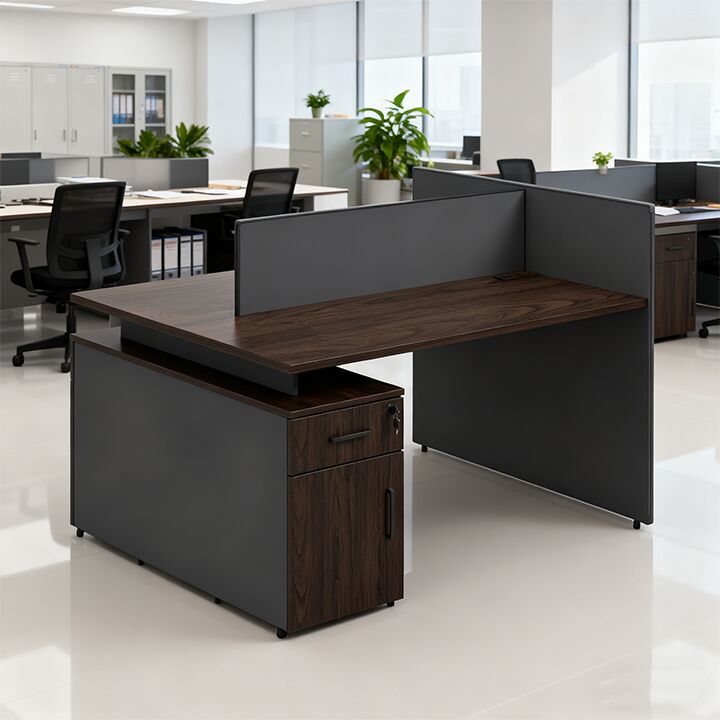 مكاتب عمل خشبية حديثة مع مساحة تخزين متقابلة بتصميم قائم بذاته وسهل التجميع